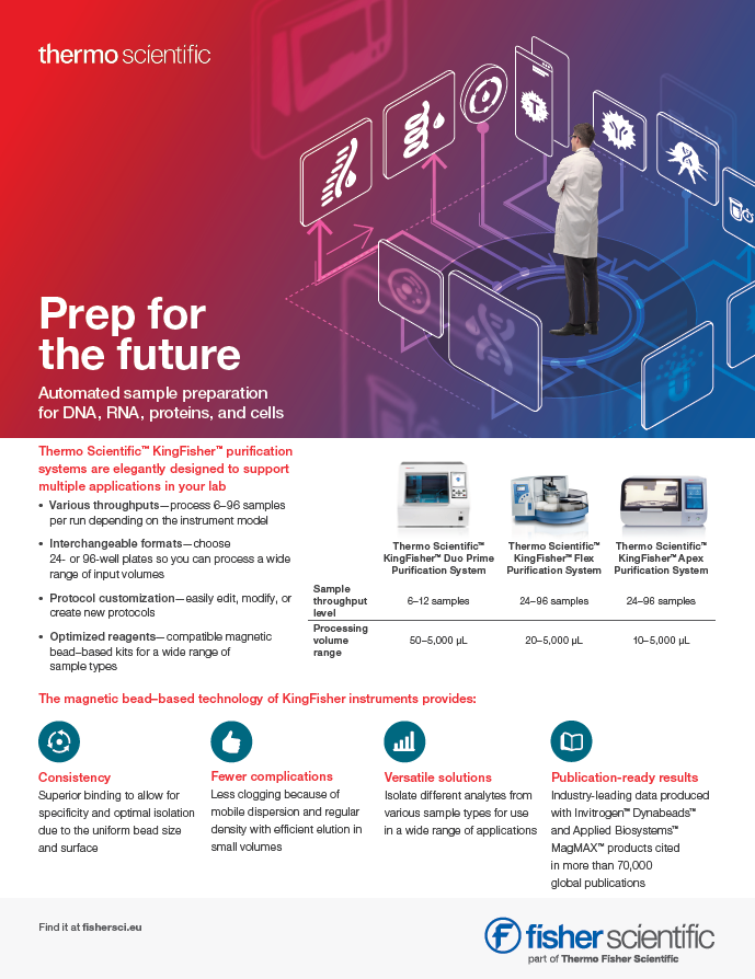 The magnetic bead–based technology of KingFisher instruments provides consistency, fewer complications, versatile solutions and publication-ready results.