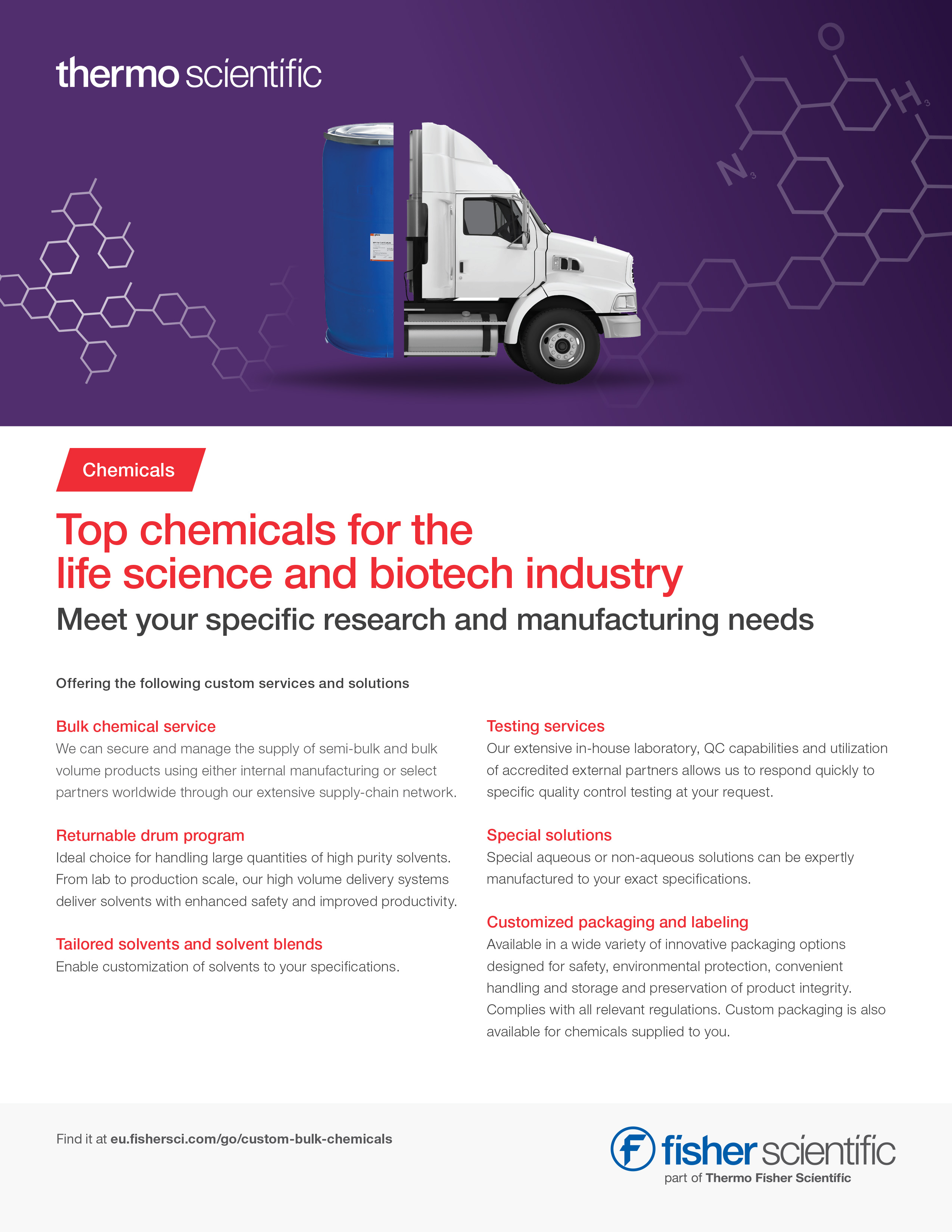 Within Thermo Scientific™ chemicals products and service, we offer compliance-ready specifications, with full traceability and complete documentation.